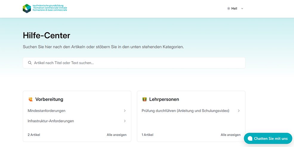 Zu effektiven Prüfungszeiten ist auch der Live-Chat (unten rechts) aktiv.